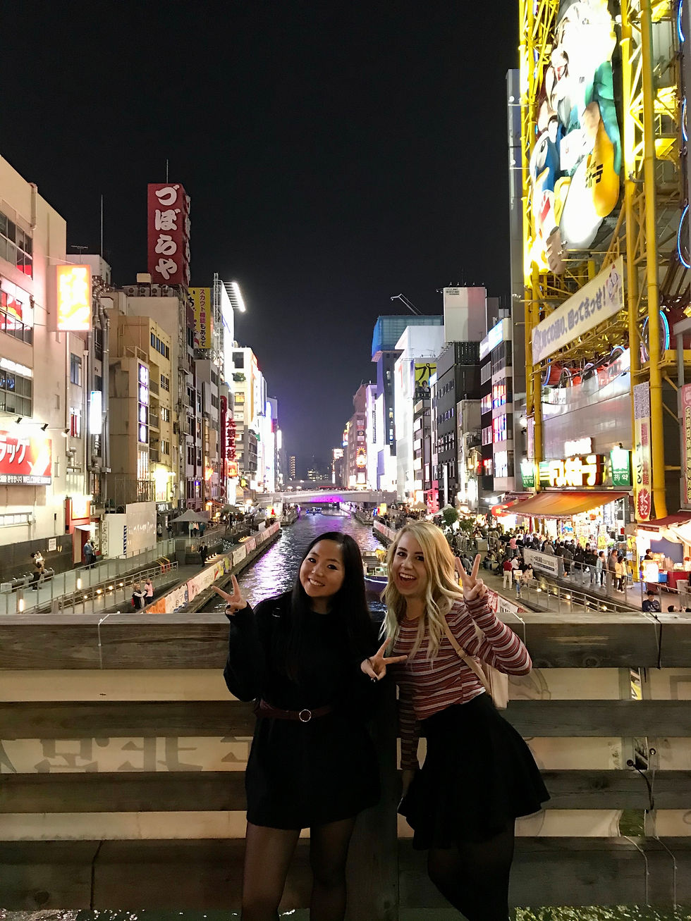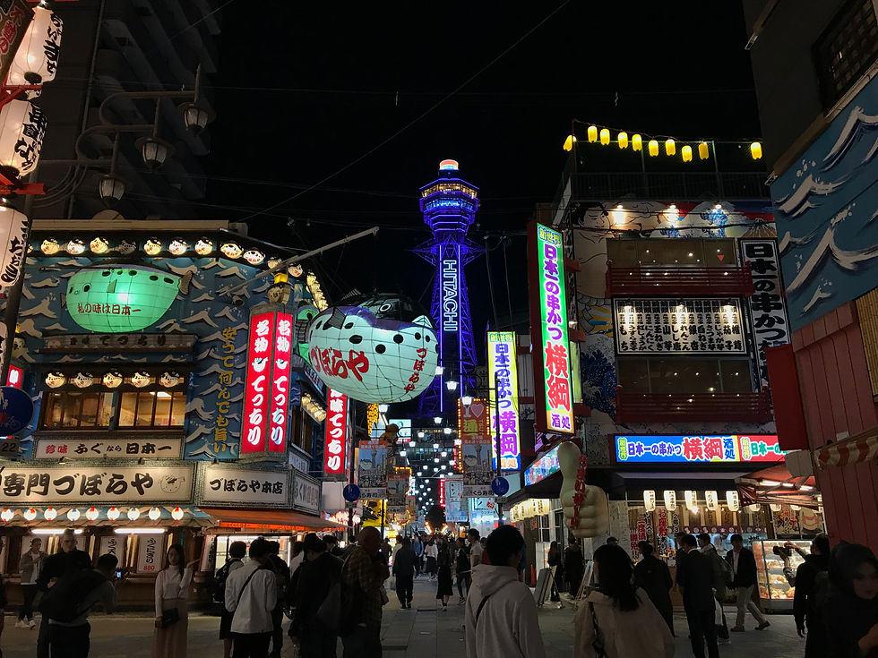 C'est le quartier le plus populaire d'Osaka. Bien connu pour par exemple le Running Man, ou bien le célèbre crabe d'Osaka, ce quartier est le plus vivant de toute la ville. Profitez-en pour vous y balader en soirée et admirez les panneaux lumineux! C'est aussi l'occasion de manger de la street food japonaise. C'est un quartier touristique donc évidemment les prix sont un peu plus élevés.