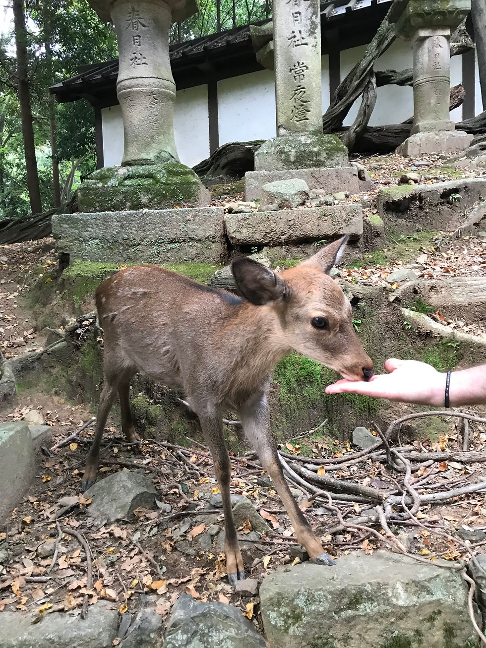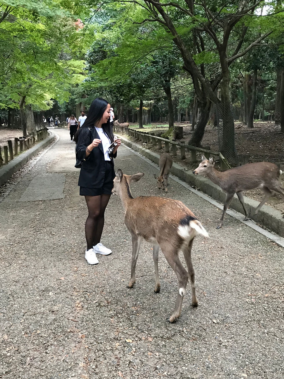 Depuis Osaka, il est facile de se rendre à Nara, il faut environ 30 min. Cette ville est très connue pour ces cerfs. Quand vous arrivez, il y a beaucoup de monde dans le parc, mais si vous marchez un peu, les touristes disparaissent petit à petit et vous pourrez nourrir les cerfs et biches à votre guise. Level of cuteness assuré! Quand j'y suis allée, il y avait le Nara Food Festival et c'était plutôt sympa. J'y ai goûté un bun aux légumes, un des meilleurs que j'ai pu mangé.