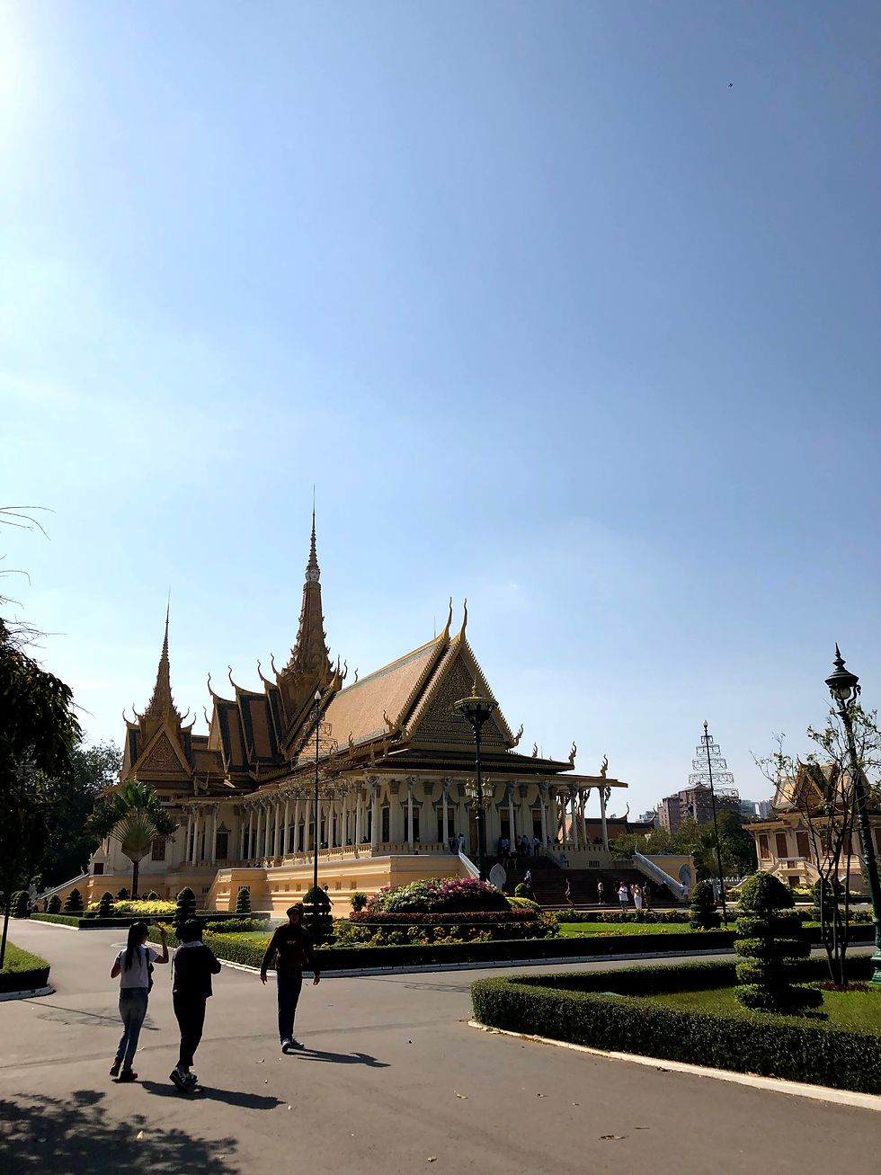 Must-do de Phnom Penh, le Palais où réside le roi du Cambodge. L'entrée est de 10$ (ce qui est très cher selon moi). Mais les palais sont magnifiques ainsi que les jardins qui l'entoure. Attention, le palais est fermé entre 12h et 14h, et vous ne pouvez pas y accéder si vous portez un short.