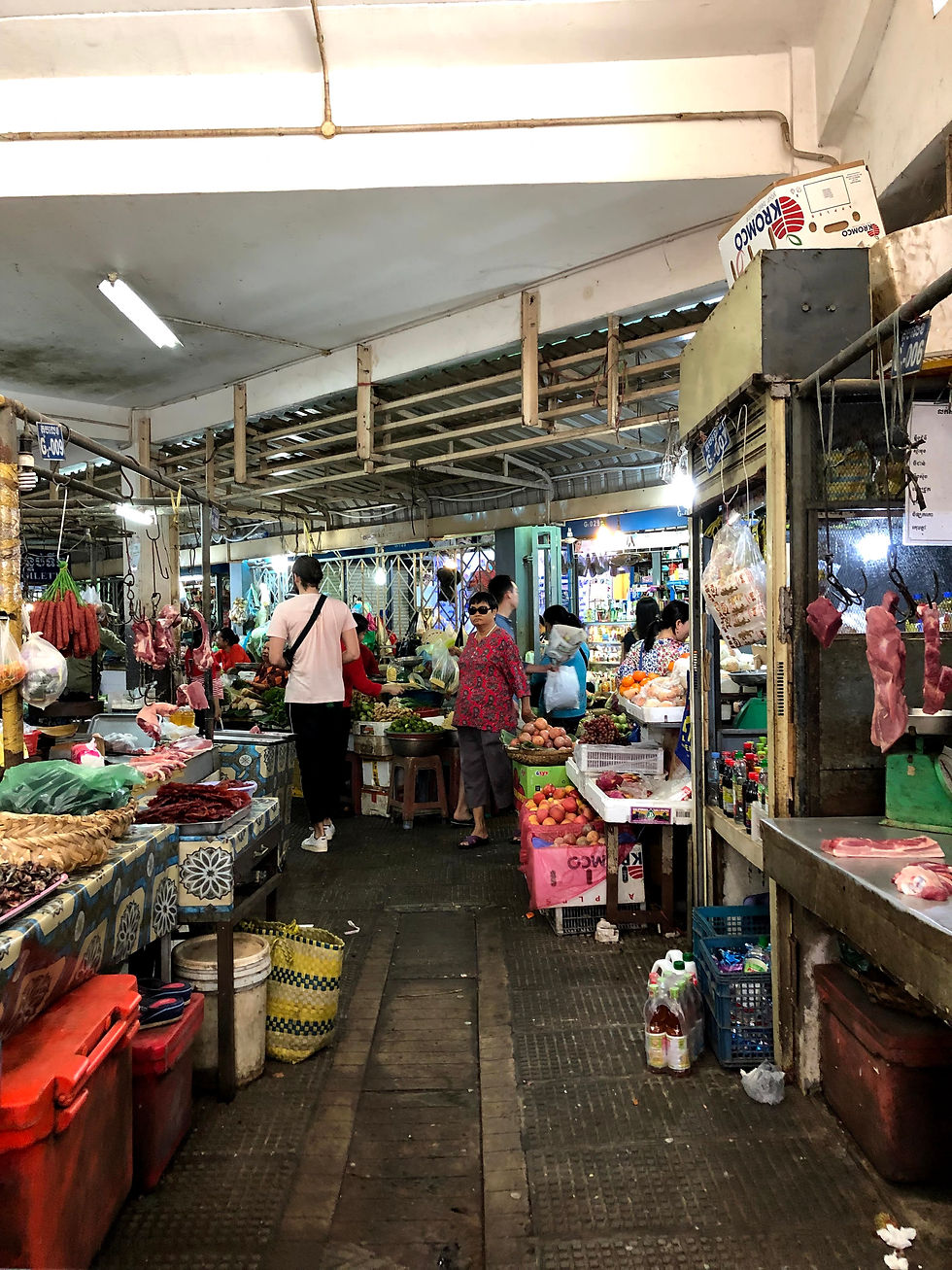 Après 8h de bus (10$), direction la capitale du Cambodge: Phnom Phen. Pour être honnête, je n'ai pas été très fan de Phnom Penh. J'y suis resté 3 nuits et si c'était à refaire, je n'y resterai que 2, voir 1 maximum. J'ai séjourné à l'auberge "Maya Pappaya Café & Hostel", situé à quelques minutes du marché de nuit (14 $ pour 3 nuits dans un dorm féminin de 8).La plupart des gens se rendent à Phnom Penh pour faire les killings fields ou le musée S21. Je ne l'ai malheureusement pas fait (Je n'étais pas dans le mood je suppose).