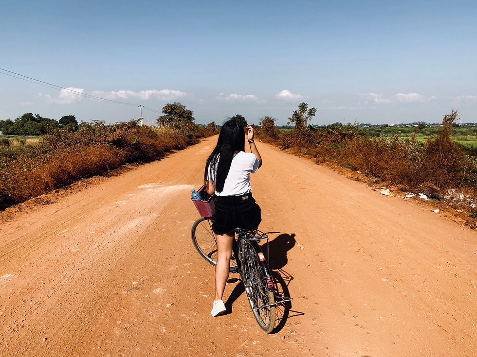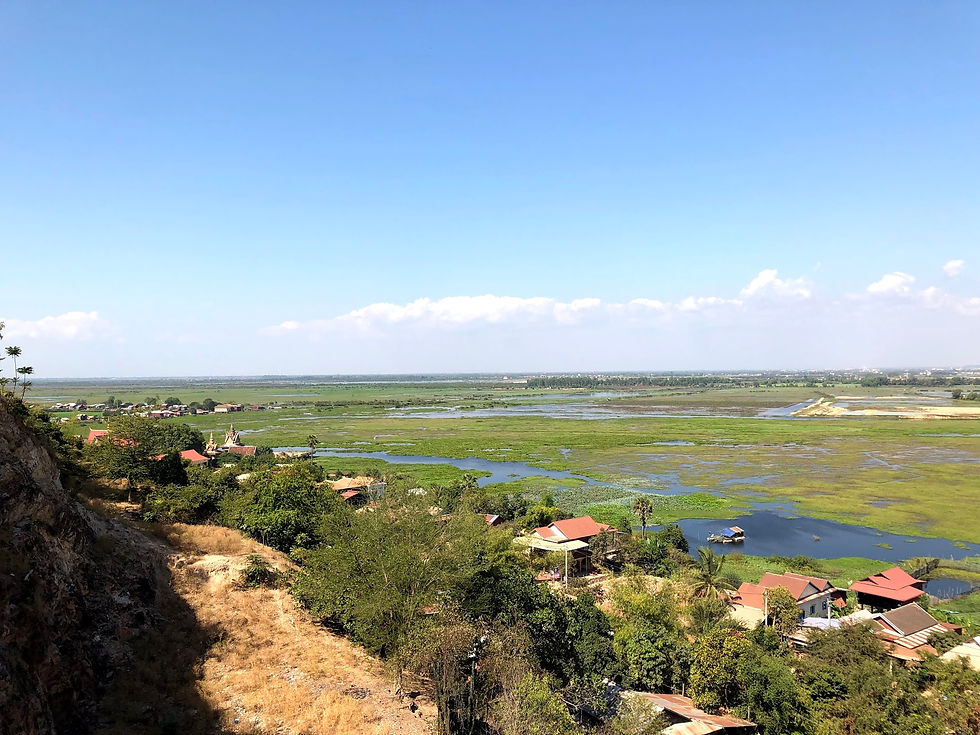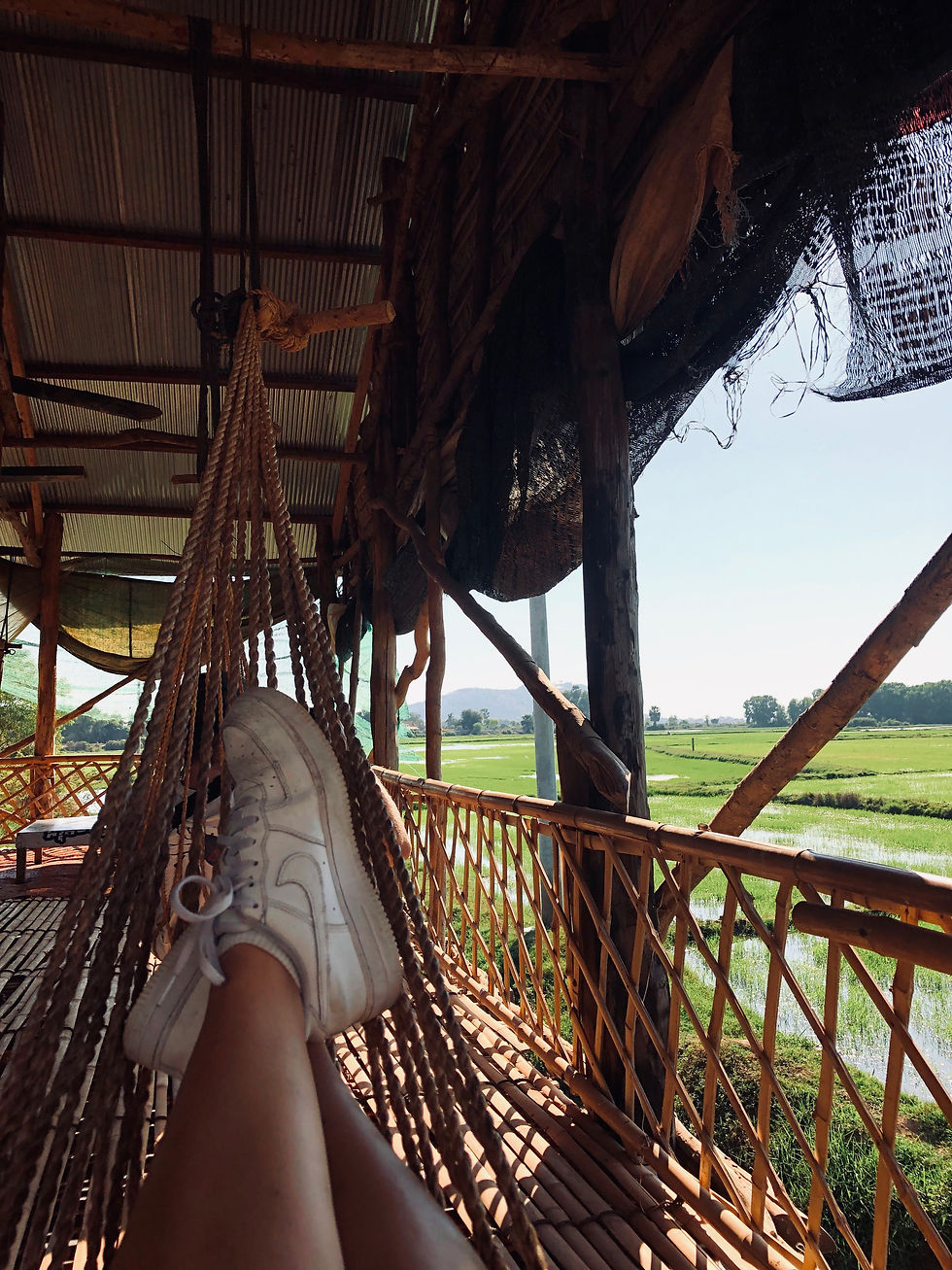 Pour mon premier jour, nous avons loué des vélos à l'auberge (1$ dans mes souvenirs pour 1 journée). Le but de cette balade à vélo était de découvrir la campagne aux alentours de Siem Reap. Pour cela, nous avions prévu de nous rendre à Phnom Krom (10 km environ depuis le centre de Siem Reap). Le point de vue est incroyable ! Sur le chemin, vous tomberez sous le charme de la véritable campagne cambodgienne. Vu la chaleur et l'effort physique, nous nous sommes arrêtés dans une petite cabane au bord d'une route. Il vous suffit de vous payer une boisson à 1$ et après vous pouvez vous installer tranquillement dans un hamac en admirant les rizières. Meilleure sieste de toute ma vie!